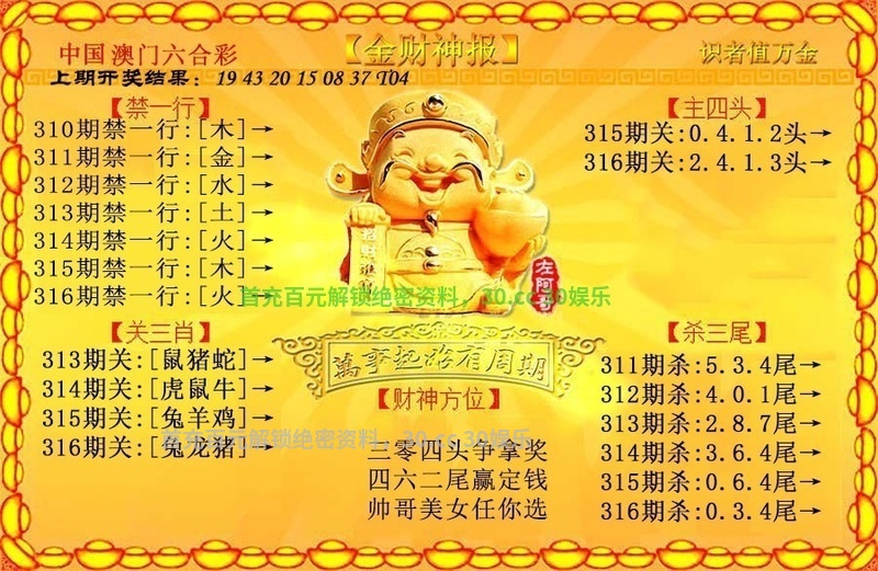 314期:发财七肖〖龙兔虎猪猴马〗开:羊23准